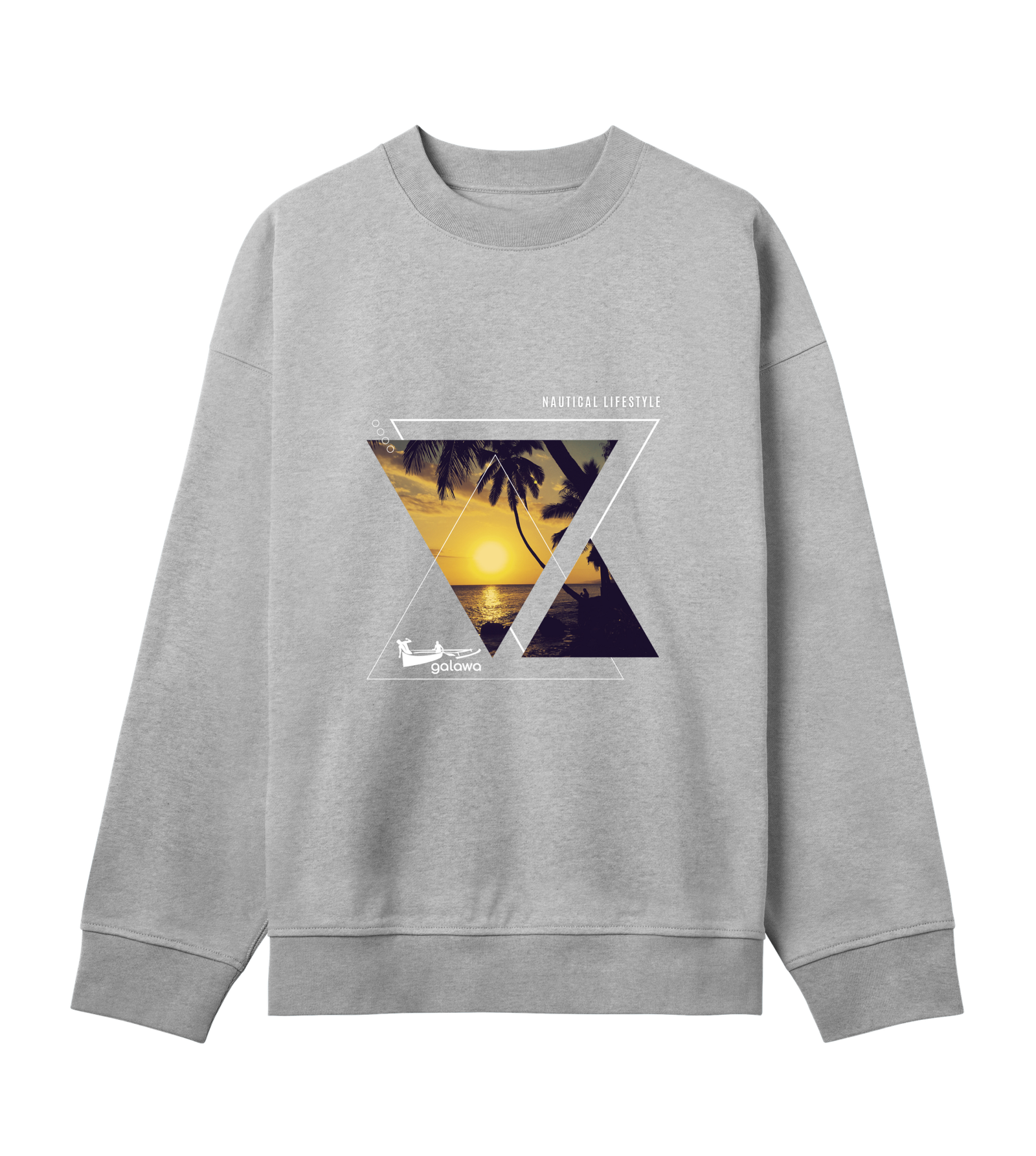 Sweatshirt Galawa Nautical Lifestyle – coupe boxy, coton bio et polyester recyclé. Confort durable, style marin moderne. Livraison incluse.